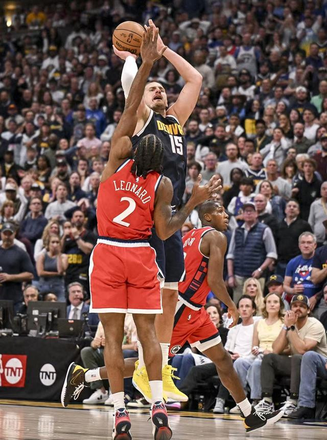 第三节:巴图姆分球给伦纳德,后者三分打进。约老师横移一步中距离出手。约基奇分球给右侧的布劳恩,后者大空位三分出手,足球稳稳打进!戈登180度转身背打,球打进了。现在快船的防守,到处都是漏的,让掘金连连得手,这也逼得快船不得不叫出暂停。